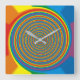 A psychedelic swirl in blue red orange mauve makes this wall clock unique.Available in round or square shapes. Customize to add numerals.