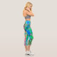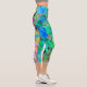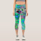 Psychedelic Trippy Lime Green and Blue Flowers Capri Leggings