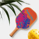 Feel the Tropical Vibes of this psychedelic pop art Pickleball paddle with bright multi colour shades of orange, pink, blue and purple palm fronds. This paddle is fun, vibrant and colourful! Nature with a playful pop of vibrant colour. Personalize with a Name or your own text.