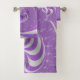 Psychedelic Violet White Fractal Striped Spiral Bath Towel Set