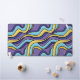 Tapis de bureau psychédélique aux vagues colorées et personnalisées avec un motif avec des vagues abstraites funky carrelées en continu dans les couleurs jaune, bleu et violet. Ce design géométrique trippy amusant est dessiné dans un style rétro moderne.