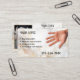 Business card featuring a dreamy ivory artistic design with an (optional) hand palm. On the back you can replace the image of the girl with crystal ball with your custom photo. Great for an aura or palm reader, fortune teller or psychic.