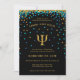 Psychology School Graduation Invitation with blue and gold glitter confetti and a gold psi symbol. Personalize the text for your graduation ceremony! Note: The gold glitter is a printed effect, no actual glitter will be used in making these invitations.