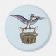 Illustration of a Pteranodon carrying a basket, representing dino airlines.