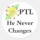 An inspirational christian sticker. PTL - Praise the Lord, He Never Changes.