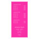 Présentez vos services avec élégance et facilité grâce à notre carte de prix personnalisée. Le titre "Tarifs" est affiché en calligraphie géologique, donnant un ton convivial et accueillant. Ci-dessous, customisez votre liste de services, avec espace pour vos coordonnées pour des demandes de renseignements ou des réservations faciles. Au verso, personnalisez une deuxième liste, parfaite pour des services supplémentaires ou des offres spéciales, et incluez des détails optionnels comme vos heures d'ouverture. Idéale pour les salons, les spas et autres entreprises de services, cette carte offre une touche professionnelle et polie qui reflète le style unique de votre marque.