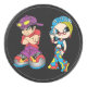 Urban Cartoon Duo Tee. A vibrant cartoon tee featuring a bold street-style boy and a colorful retro-fashion girl standing side by side. red, blue, green, pink, purple, yellow, orange, heart, rose, butterfly, floral, romance, love, ribbon, spring