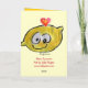 It's true love with this cute funny cartoon lemon. Front reads : "Pucker Up" Inside it says: "Happy Valentines Day to my main squeeze" (with a little watercolor heart at the end.)Then get ready to pucker up for a tart kiss that makes you feel tangy all over.