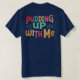 This playful t-shirt design is a fun way to invite someone to join you for some pudding! It features the phrase "Pudding Up With Me?" in a mix of vibrant, colourful fancy fonts. The whimsical lettering adds a touch of cheerfulness, making this design perfect for anyone who loves puns and sweet treats.