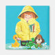 Artist: Jack Weaver | Girl with raincoat stands in puddles with frog, dog, and duck