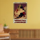 This vintage design of National Parks and Monuments: Pueblos of the southwest was originally created for the Works Progress Administration (WPA) around 1935 . This poster shows pueblo dwellings with cactus and clay pot in foreground.