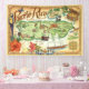 A 4x6 banner to use for a party or wedding backdrop. It's a vintage postcard map of Puerto Rico.
