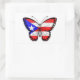 This unique design features the flag of Puerto Rico on a beautiful butterfly. The flag contours to the details in the wings and curves around the body of the butterfly giving it a realistic look. The edges of the wings are painted black which frames the Puerto Rican flag inside of the pattern. This wonderful flying creature is a perfect combination of nature and patriotism.
