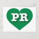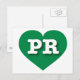 This postcard features an eco-friendly green heart containing the bold, white, upper case letters PR, the official abbreviation for Puerto Rico, the isle of enchantment.