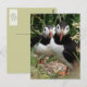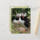 A couple of puffin together in the long grass. One of them had just come out of it's burrow while the other had just returned to the burrow empty handed of fish. These wonderful Atlantic Puffins come ashore to breed between March and August. On Skomer Island, off the Pembrokeshire coast, it's possible to get a close up view of them as they go about their daily rituals. These endearing little auks will brighten up anyone's day so feel free to personalise them to suit your occassion and bring a smile to someone's face.