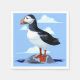 Cute Atlantic Puffin seabird, with his typical black and white plumage and brightly coloured beak, standing on a rock, in the Ocean. Original Vector Illustration Copyright BluedarkArt TheChameleonArt.