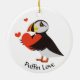 Puffin Love Red Hearts Ornament