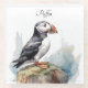 Puffin on a Rock Watercolor, custom Glass Coaster