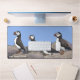 Des macareux se reposent sur les rochers. Customisez en ajoutant votre propre texte. Le Puffin Atlantique (Fratercula arctica) se nourrit principalement de plongée dans l'eau. Ils se reproduisent dans de grandes colonies sur des falaises côtières ou des îles au large de l'Atlantique Nord. Après la saison de reproduction, les macareux versent les parties extérieures colorées de leur bec, laissant un bec plus petit et plus pâle. Leurs ailes courtes sont adaptées pour nager avec une technique de vol sous l'eau. En l'air, ils battent rapidement leurs ailes (jusqu'à 400 fois par minute) en vol rapide, volant souvent au-dessus de la surface de l'océan.