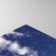 A bank of puffy white clouds breaks into small wispy pieces across the frame of the vertical photograph. The cloud cover is denser on the left and more sparse on the right, revealing a deep blue sky that is dark near the top of the photo and lighter near the bottom. Late afternoon sun highlights the right edges of the cumuli. It looks like torn apart cotton balls suspended in air.