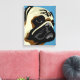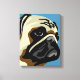 Canvas dog art on wrapped canvas with Pug illustration against a blue background
