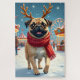 A festive painting of a Pug enjoying a snowy winter fairground filled with lights and laughter. This joyful scene captures the wonder of Christmas celebrations for dog lovers everywhere.
