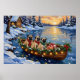 Pug Christmas Boat Holiday Poster