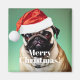 Cute Pug dog wearing a Santa hat.