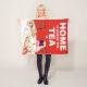 Cozy fleece throw blanket with a dog image. Text reads "Home is where the Tea is."