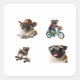 Introducing the Pug dog 4-Pack Sticker Set! This adorable pug is on a roll – quite literally! Watch as it transforms into a cowboy, hits the streets on a mini bike, rocks a skateboard with flair, and exudes cool vibes in stylish sunglasses. A compact dose of pug-induced laughter and charm for all your belongings!