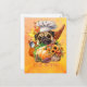 Pug Dog Hello Pumpkin Fall Autumn Thanksgiving Holiday Postcard
