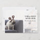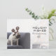 Pug dog wearing reindeer horns on couch holiday card
