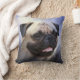 Fawn coloured pug face over a blue hued painting like background dog lovers throw pillow