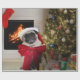 Pug Misha wearing a bow for Christmas Wrapping Paper