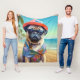 Pug on Beach, summer gift for dog lover Fleece Blanket