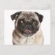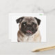 Brighten someone's day with handwritten note! This fun canine postcard features an image of a Pug puppy dog wearing highlighted against a creamy white background.