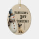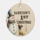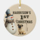A adorable watercolor pug puppy and snowman makes these custom first Christmas ornaments a heart warming keepsake gift. Easily customize to make a special gift this Christmas.