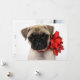 Pug Puppy Wrapped in a Christmas Bow Holiday Card