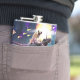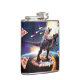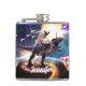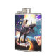 Pug riding dinosaur unicorn in space hip flask
