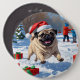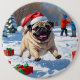 Pug Running in Snow with Christmas Hat 6 Inch Round Button