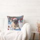 Pug Running in Snow with Christmas Hat Throw Pillow