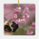 Pug Smelling Cherry Blossoms Ceramic Ornament