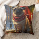Pug with Christmas Lights Holiday Throw Pillow