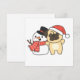 Pug With Snowman In Winter For Christmas Holiday C Card