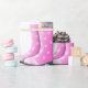 Adorable pug puppy in galoshes