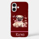 An Fashionista Pug Puppy On A Red iPhone 16 Case You Can Personalize With Name .