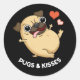 Pugs And Kisses Funny Dog Pun Dark BG Classic Round Sticker