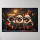 Pugs Christmas Caroling Festive Holiday Poster