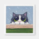 Les aimants de frigidaires d'art de chat Whimsical font de grands cadeaux pour les amateurs de chat. Un aimant avec un chat triste qui regarde par une fenêtre avec de la pluie qui descend tout autour ! Créé à partir d'une peinture originale © 2008 Lisa Marie Robinson
