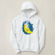 Un joyeux visage de lune jaune portant un casquette bleu et blanc. Ce design semble vraiment efficace sur ce Sweat - shirt à capuche féminin